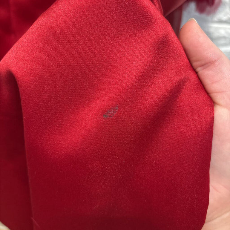 Frilly lining is attached by a snap button strip and can be easily removed. Also comes with a matching scarf. Has a small spot on the back. Measurements available upon request!
