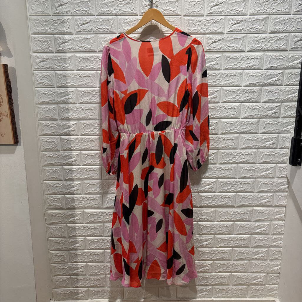 Patterned Long Sleeve Midi Dress