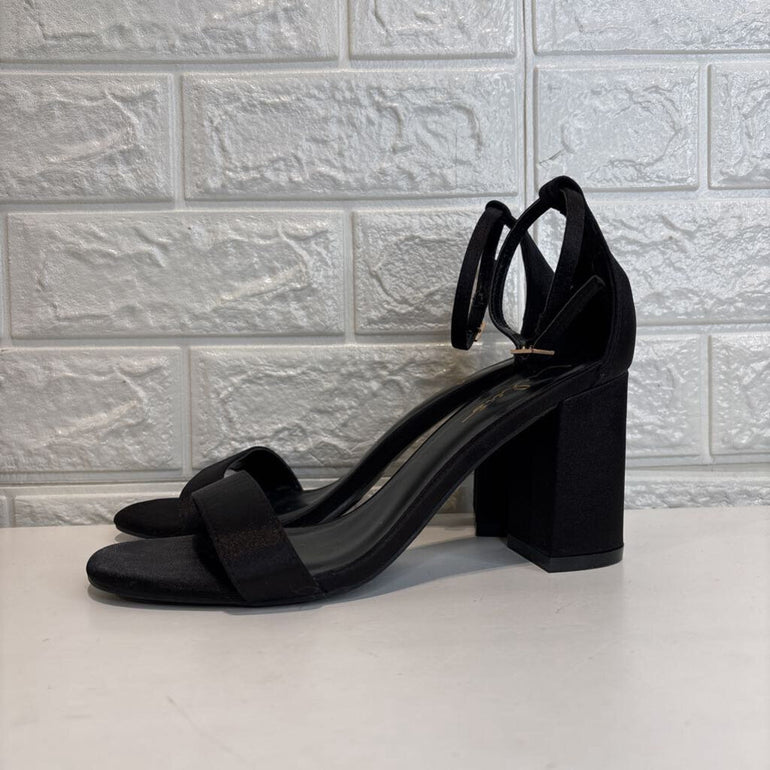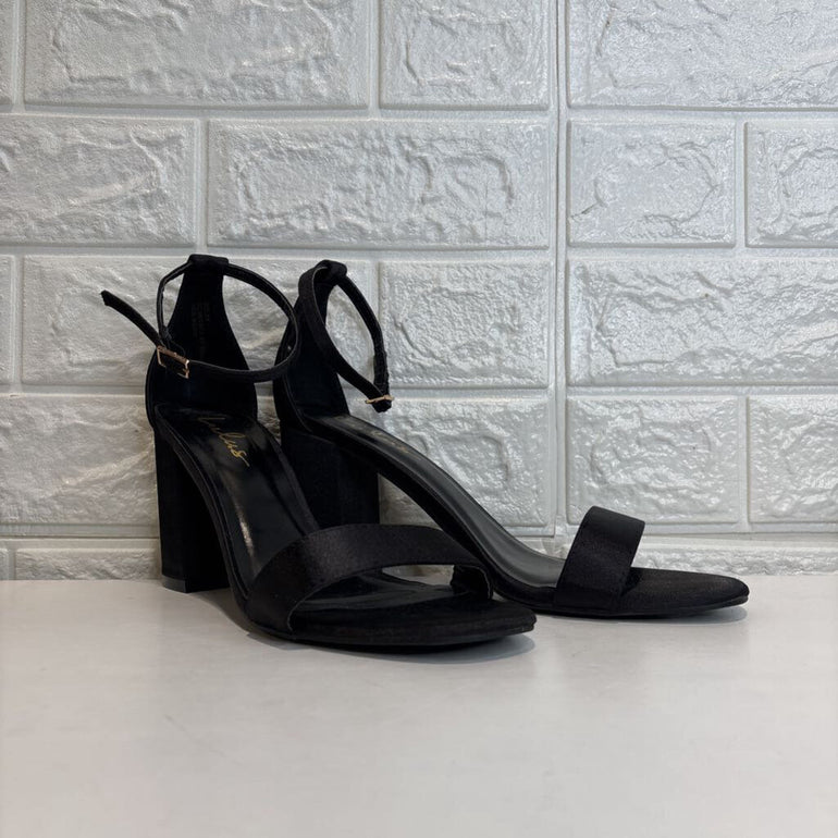 Satiny Ankle Strap Chunky Heels