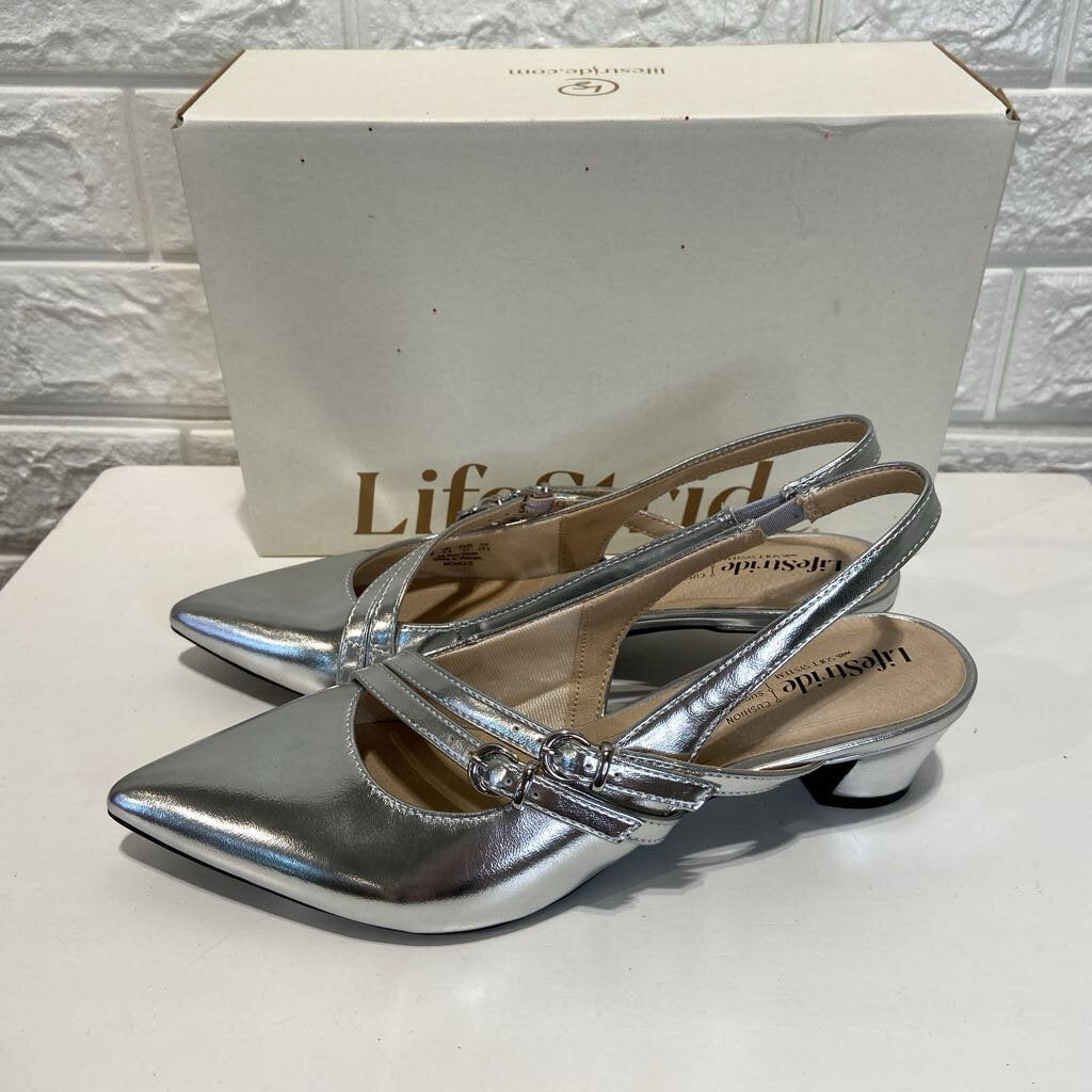 Monique Metallic Slingback Kitten Heels NIB
