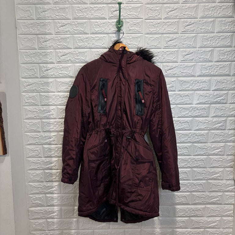 3/4 Length Puffer Parka Coat w/ Faux Fur Hood