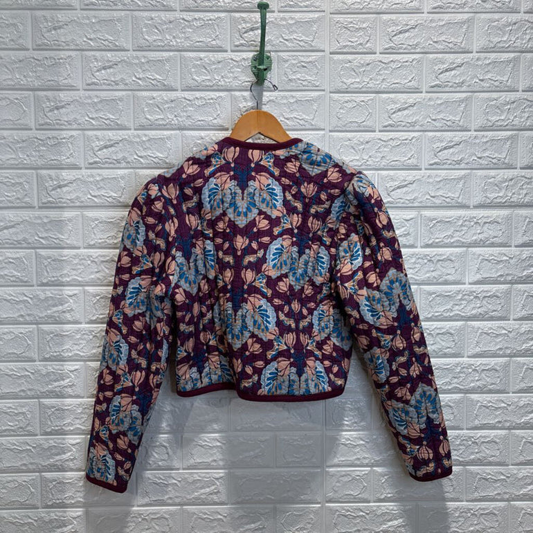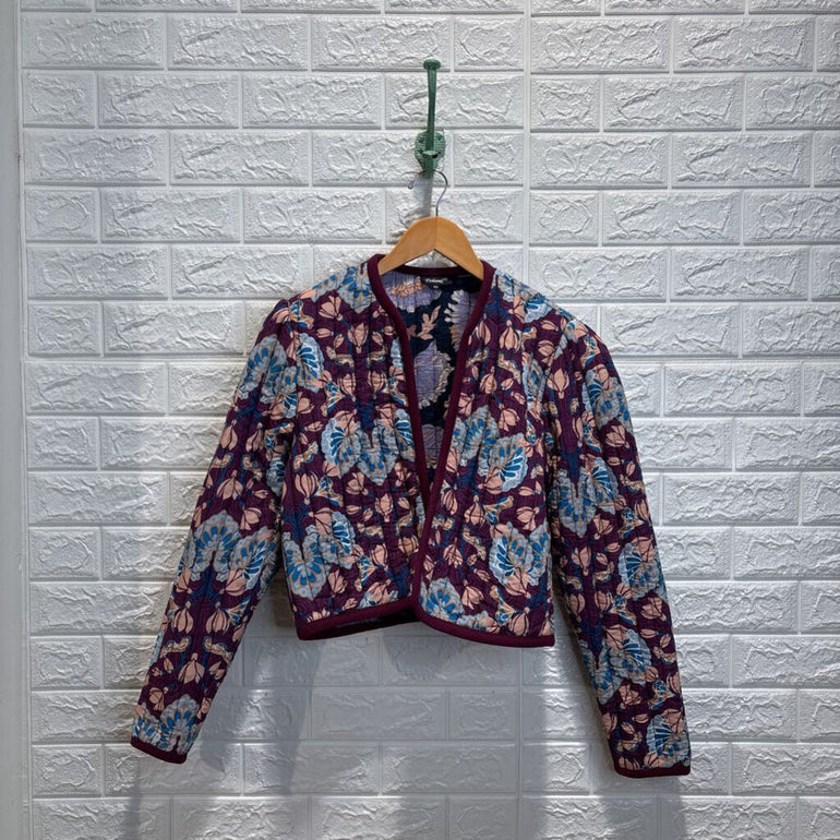 Line Quilted Floral Open Jacket