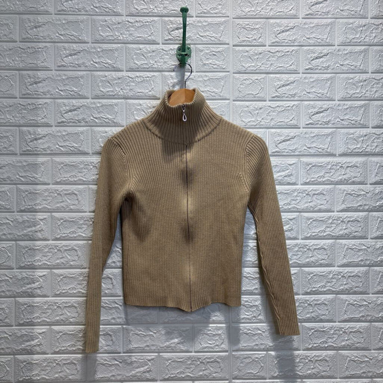 Wool Blend Ribbed Knit High Neck Jacket *as is*