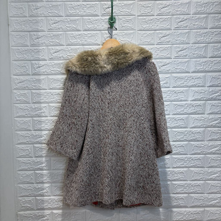 Wool Blend Tweed Coat w/ Removable Faux Fur Collar