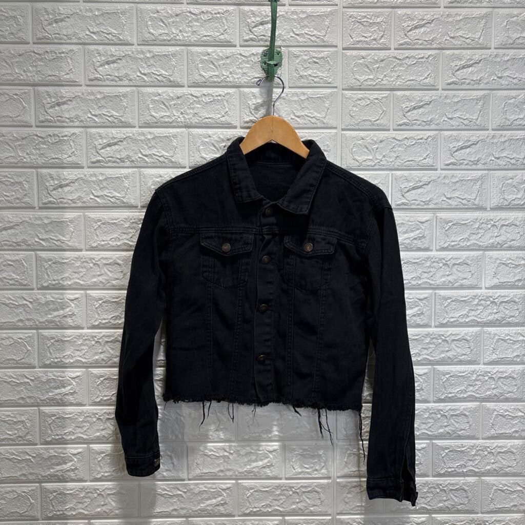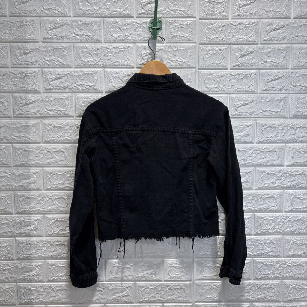 Fray Hem Cropped Denim Jacket