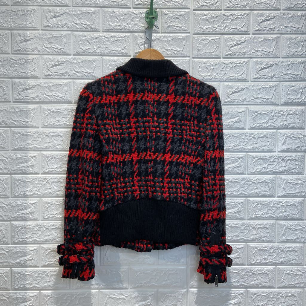 Wool Blend Ribbed Knit High Neck Jacket *as is*