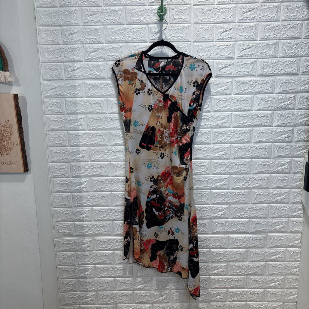 Vintage Sleeveless Fan Floral Print Midi Dress