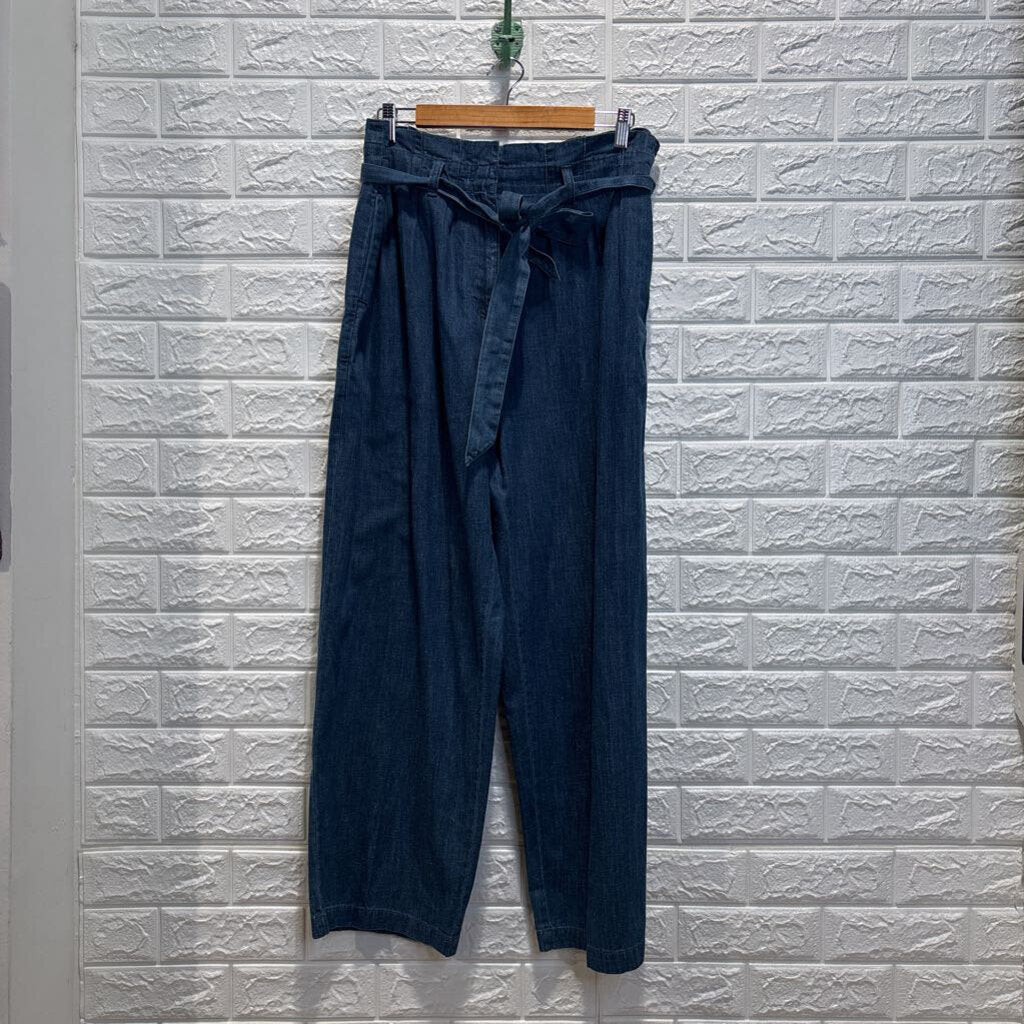 Chambray Loose Leg Paperbag Waist Pants