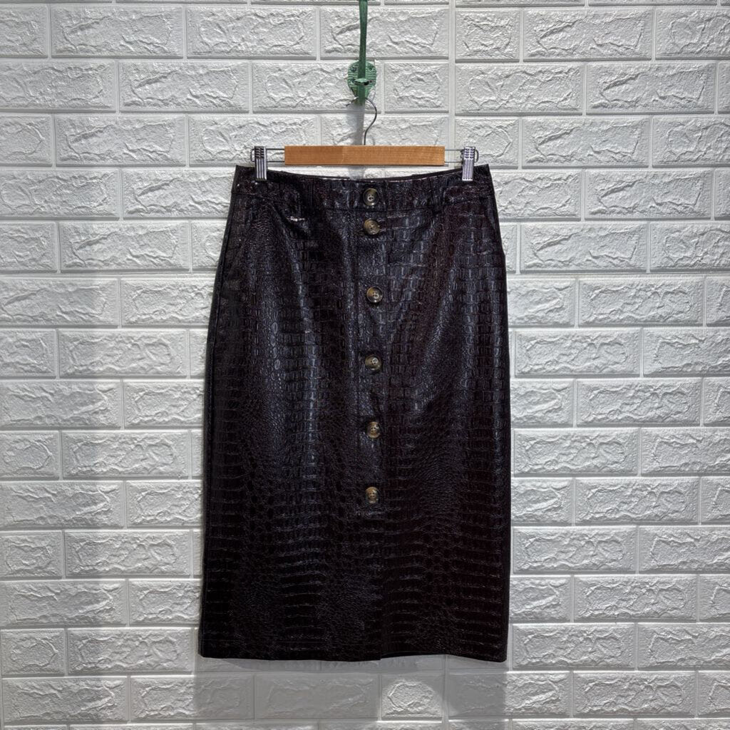 Croc Embossed Pleather Midi Skirt