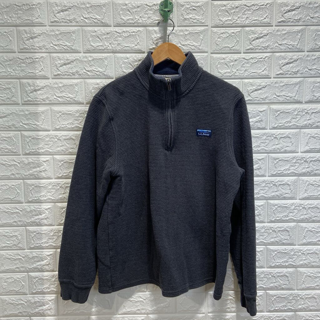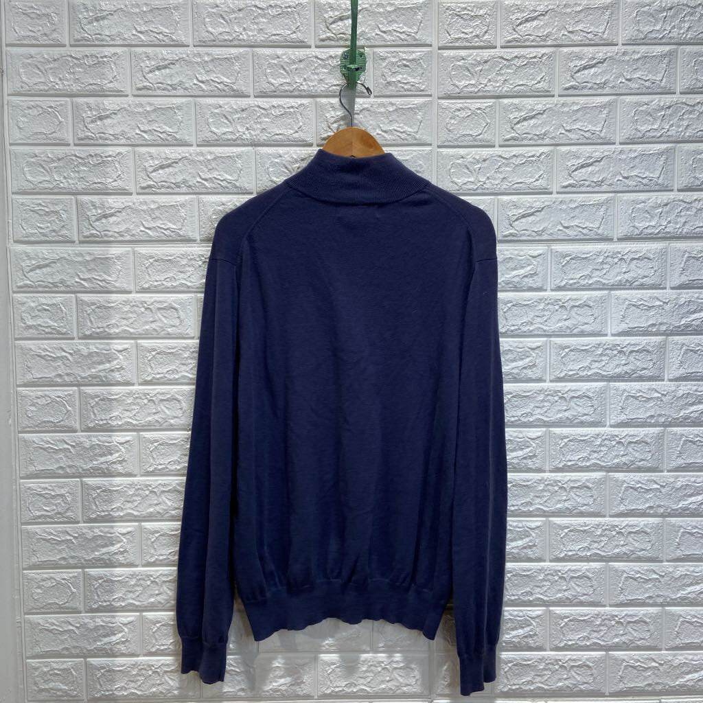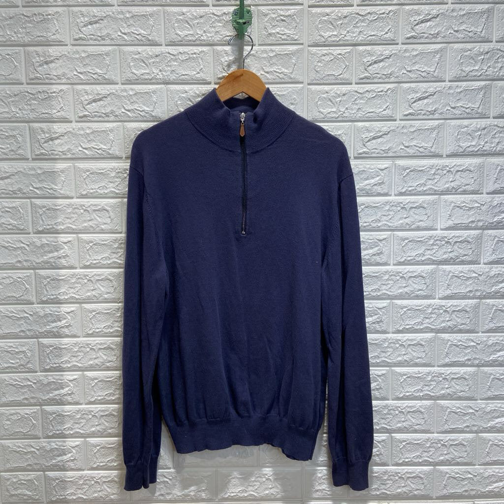 Ribbed Collar Cotton Blend Quarter Zip Sweater