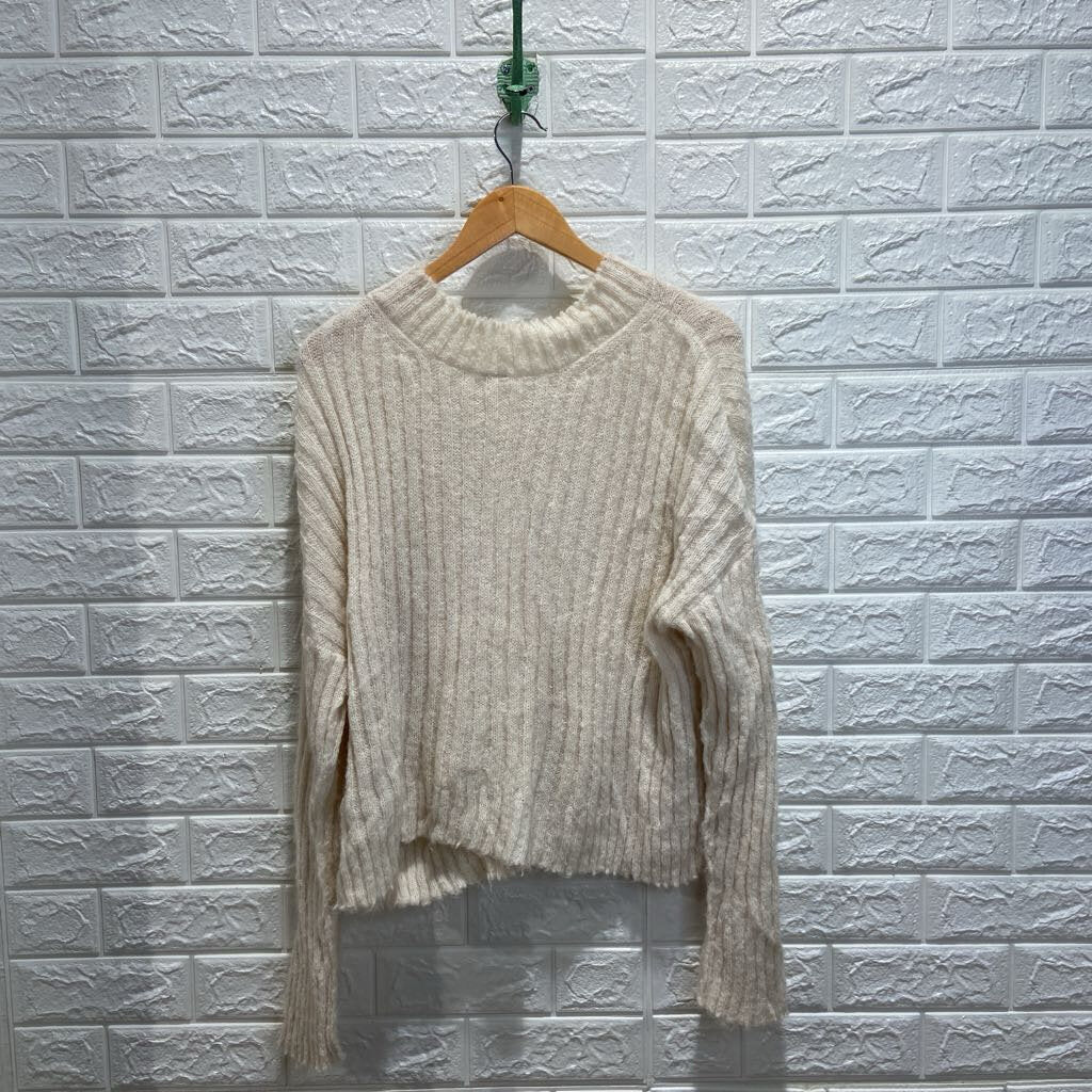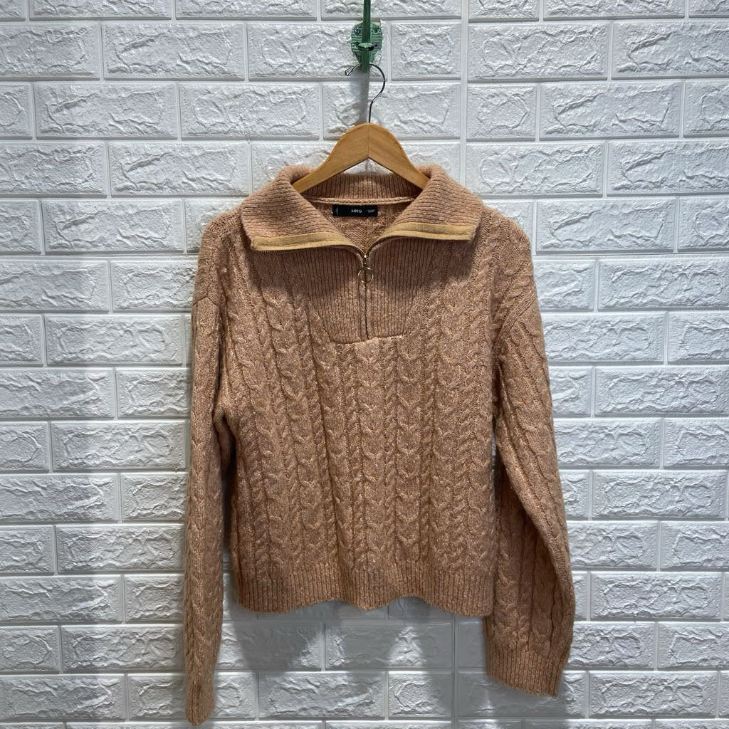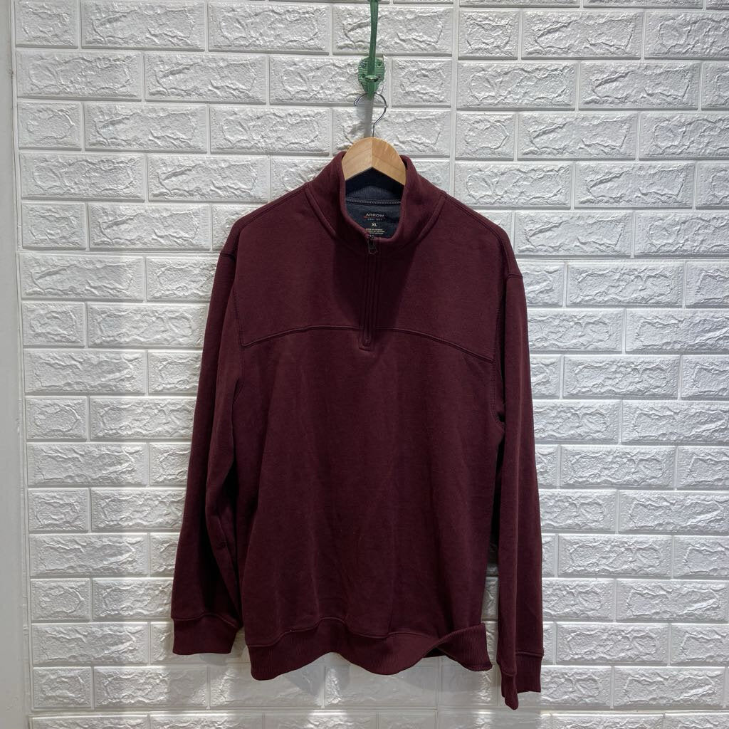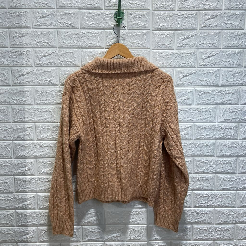 Ribbed Collar Cotton Blend Quarter Zip Sweater