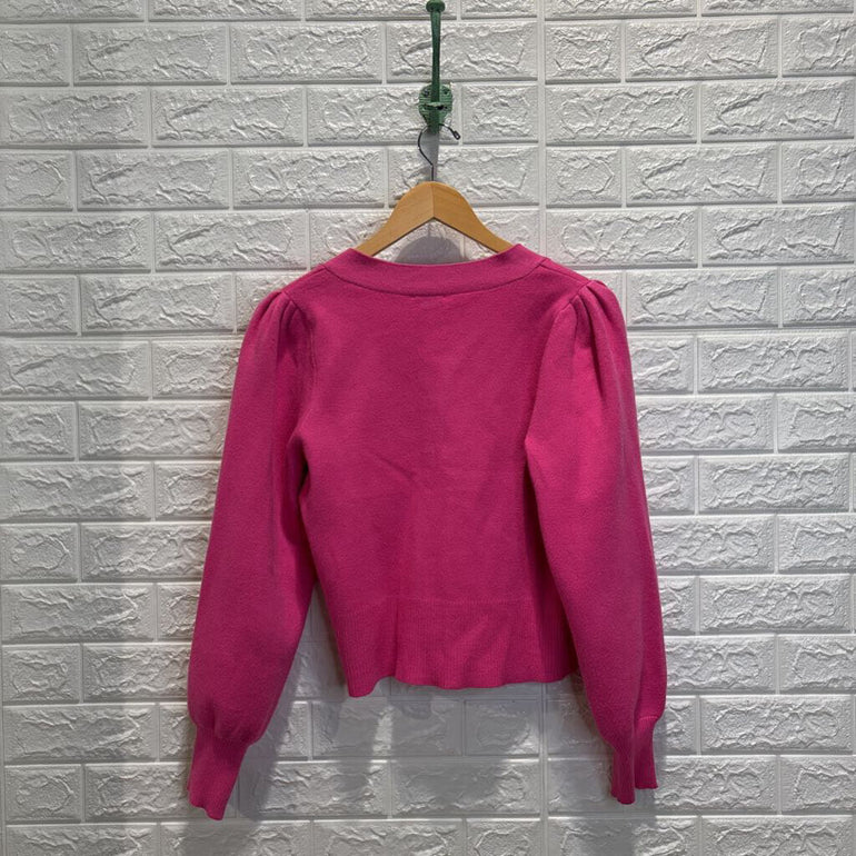 Cheetah Button Puff Shoulder Cardigan