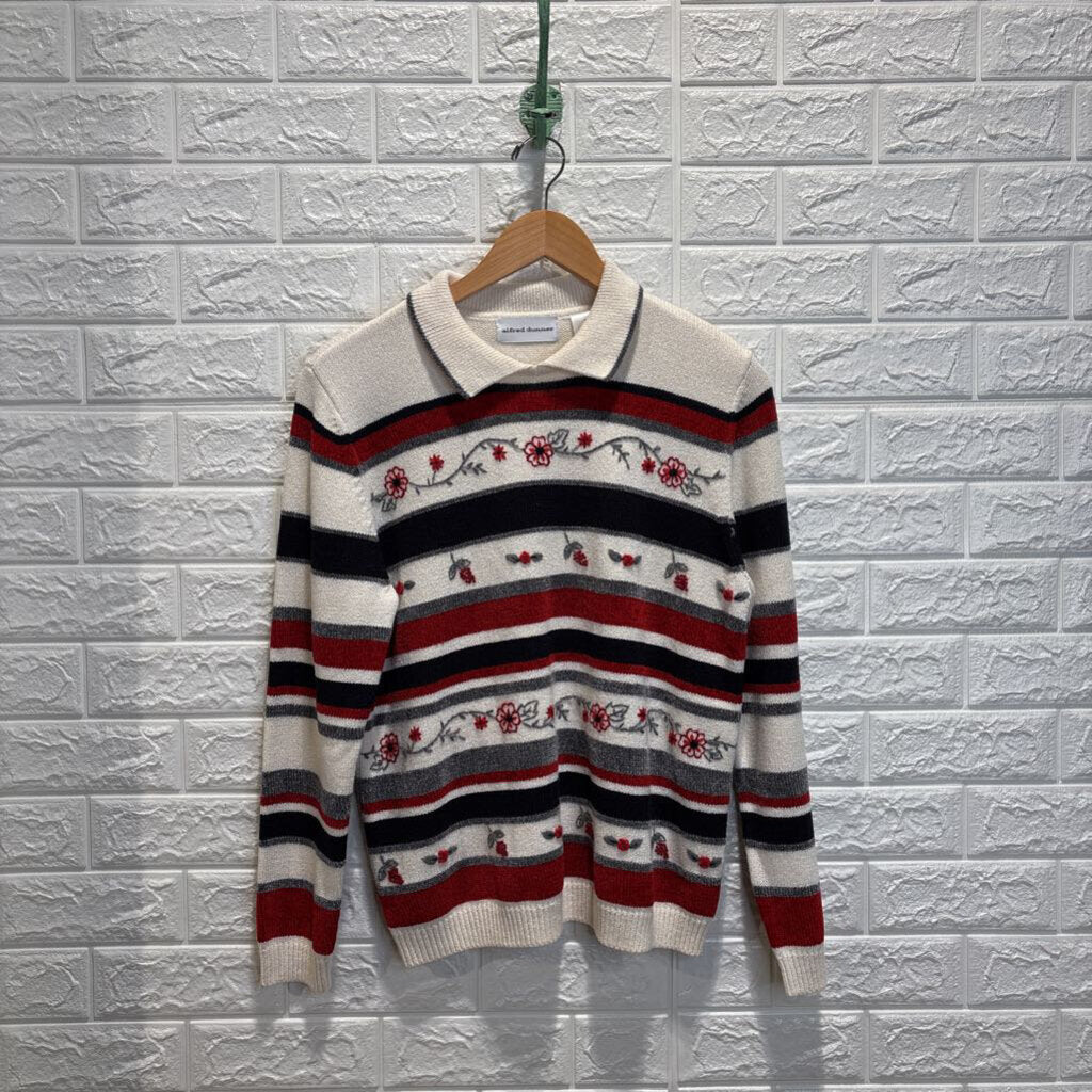 Floral Embroidered Striped Sweater