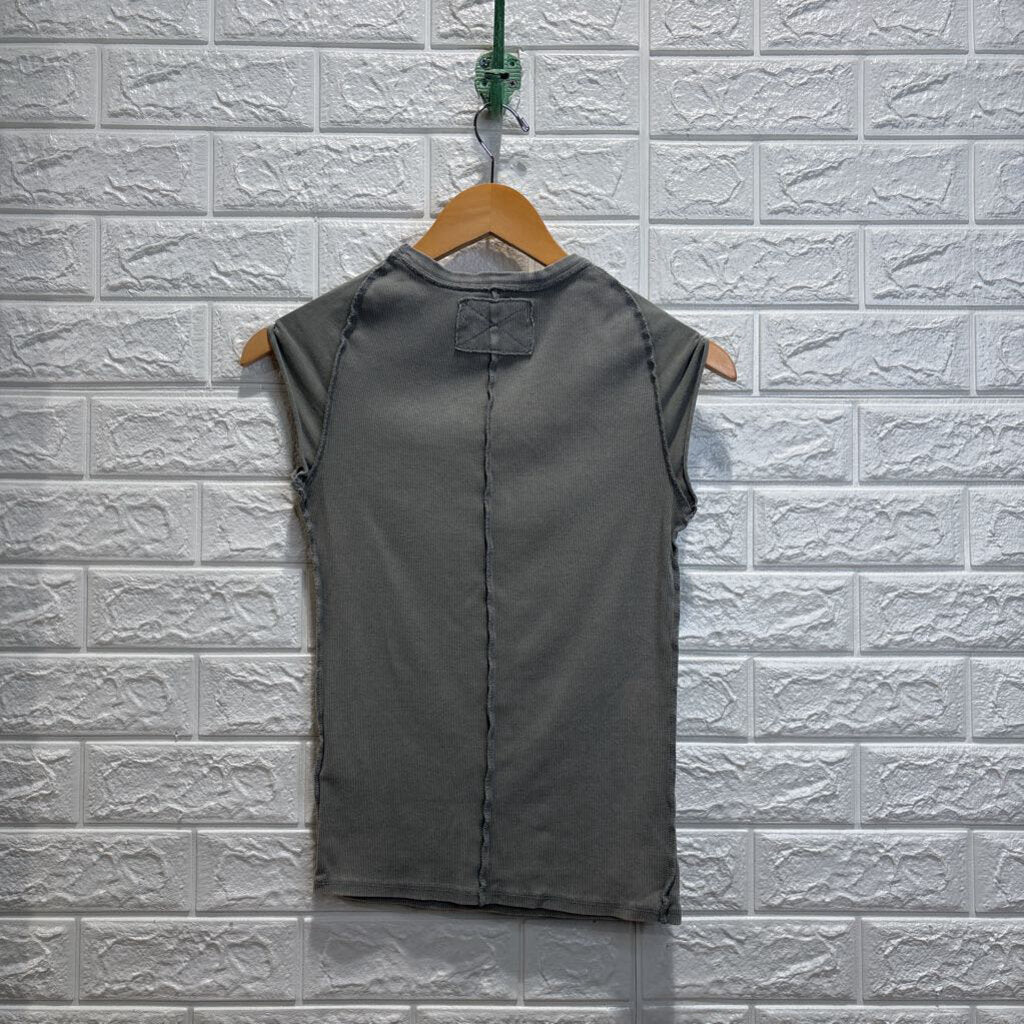 Ribbed Paneled Short Sleeve Top