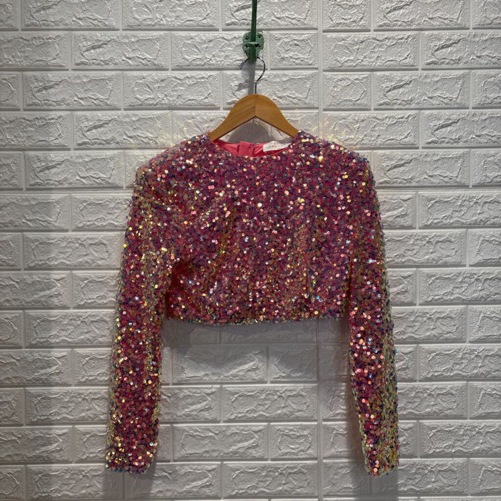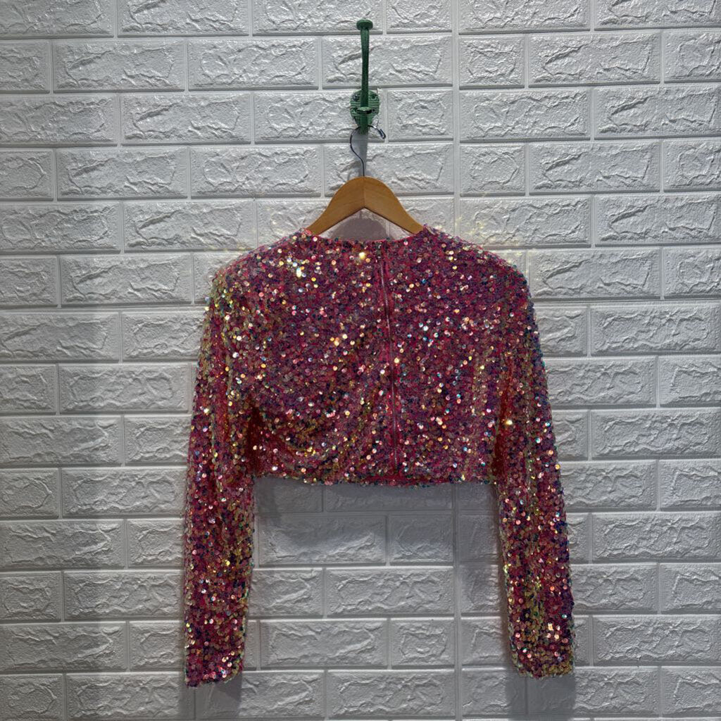 Sequined Long Sleeve Crop Top