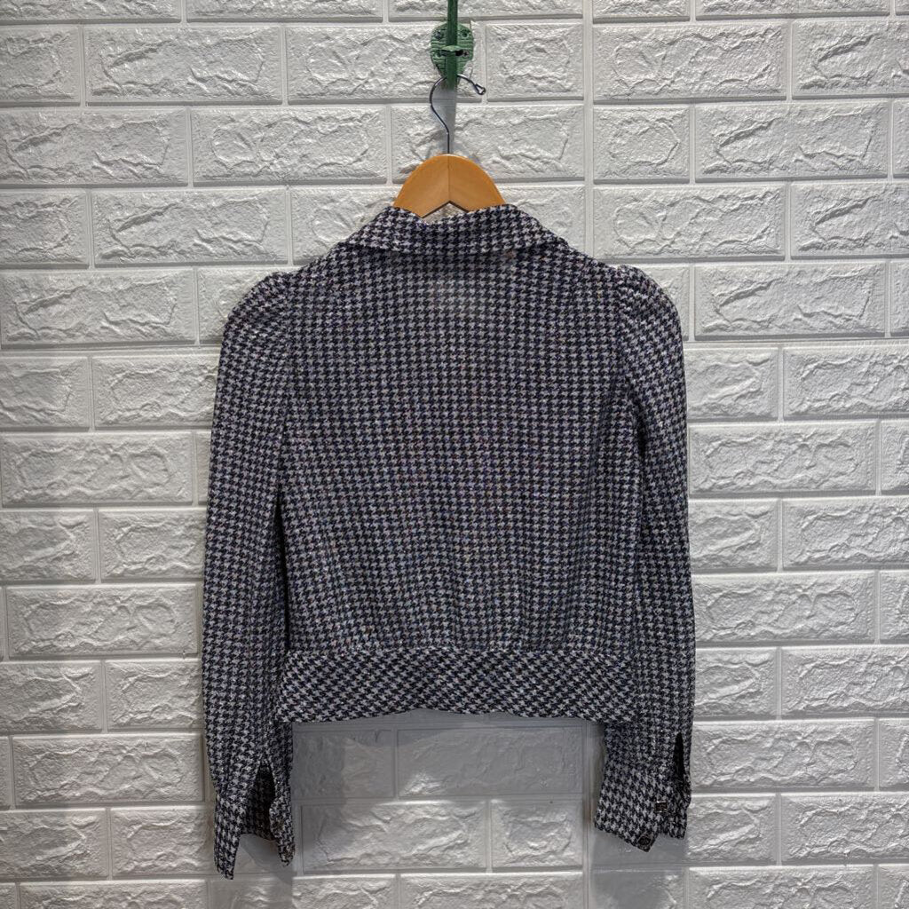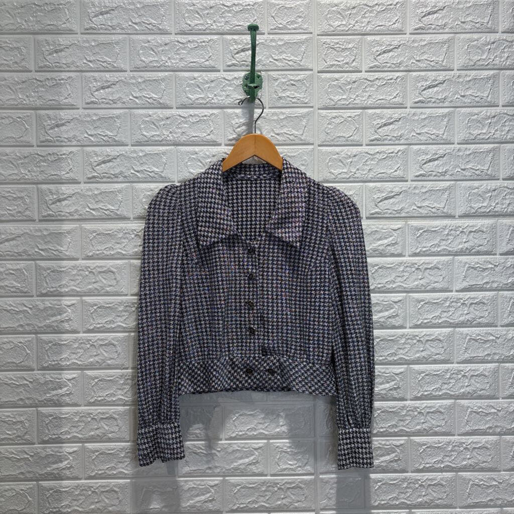 Shiny Threaded Houndstooth Crop Shirt