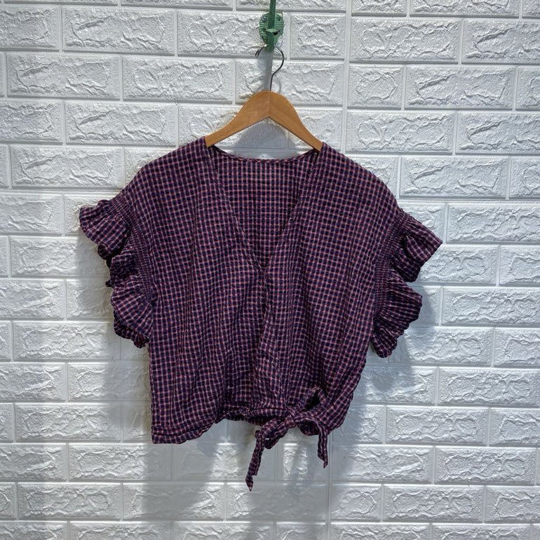 Plaid Flutter Sleeve Side Tie Wrap Top
