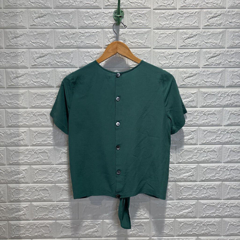 Silk Button Back Tie Tee Top