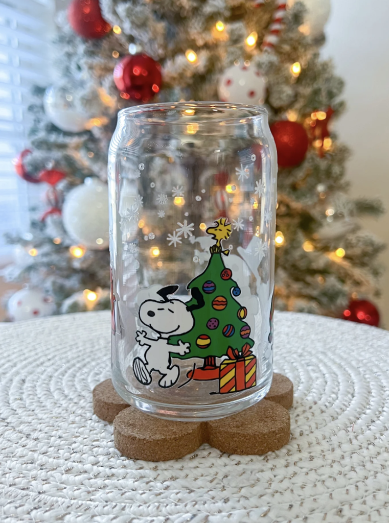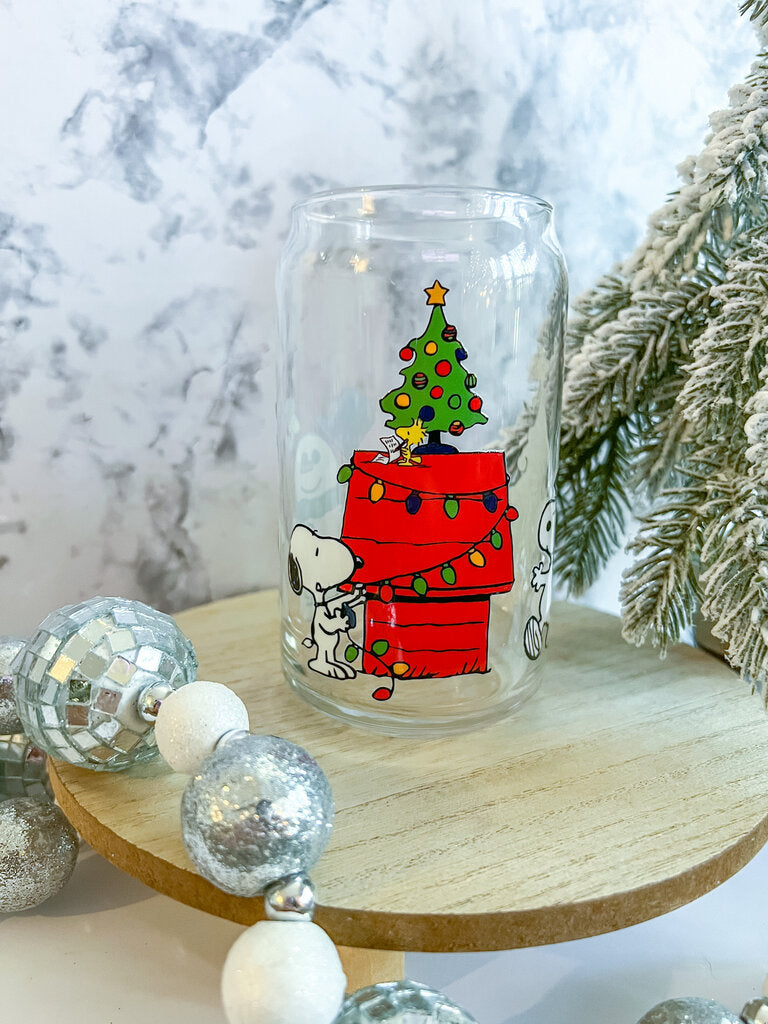 Christmas Snoopy Glass Cup
