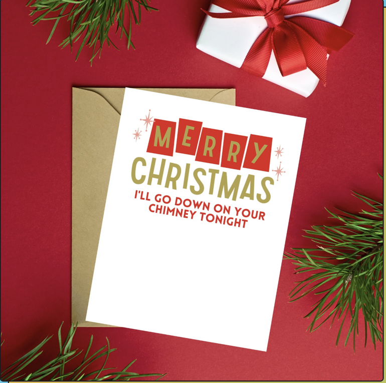 Turn up the holiday heat with our playful "Chimney Delights" card. More than just visions of sugarplums will be dancing in their head when they see this naughty nod to festive fun. Santa might be coming down the chimney, but this card promises... well, a different kind of celebration.