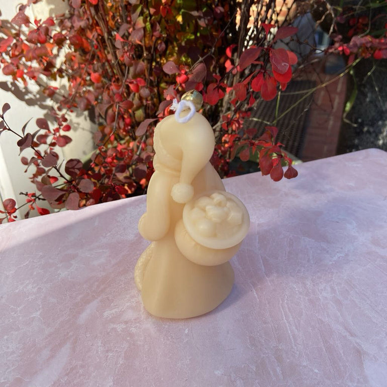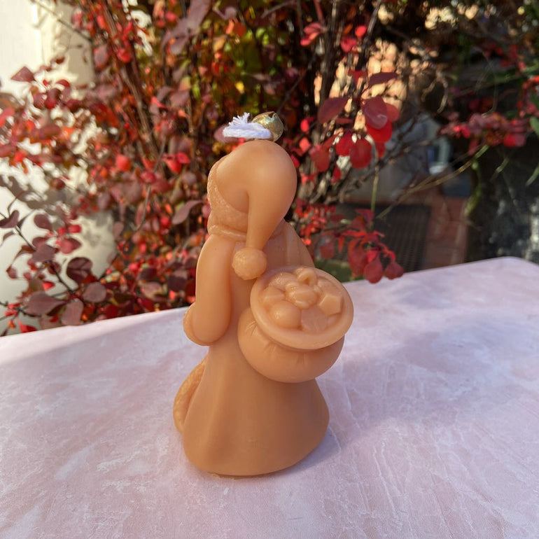A handmade Santa Claus candle with a mild fragrance! Measures approximately 3"x4.5". Since these candles are handmade, each is unique and has some color variation!