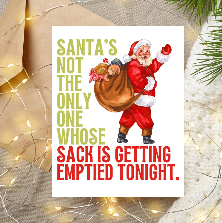 Santa’s not the only one whose sack is getting emptied tonight. 🎅 This card brings big filthy energy to your holiday gifting—perfect for your husband, boyfriend, or sneaky link.