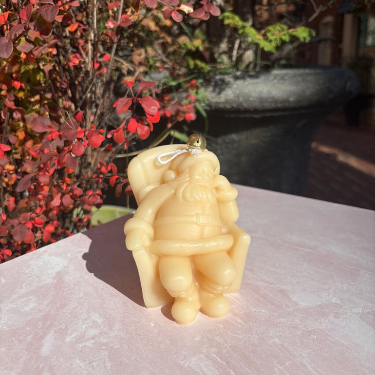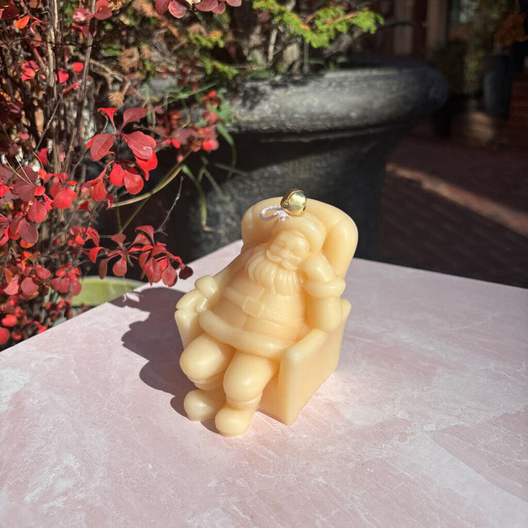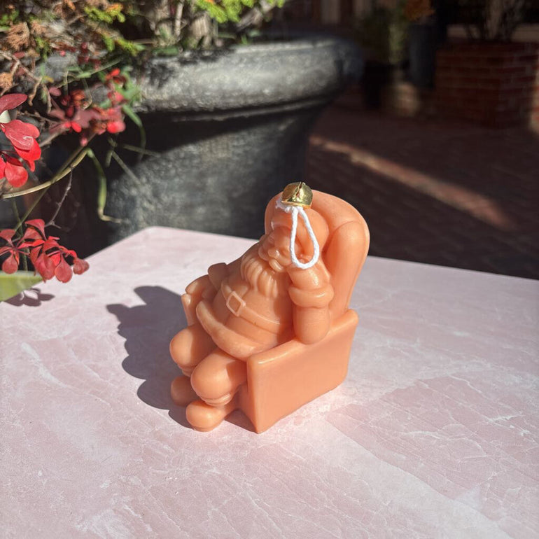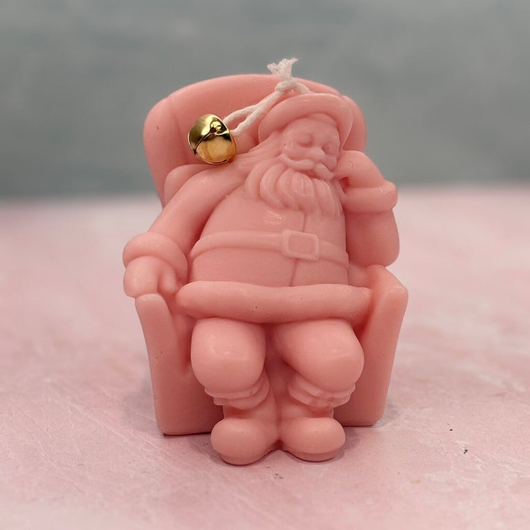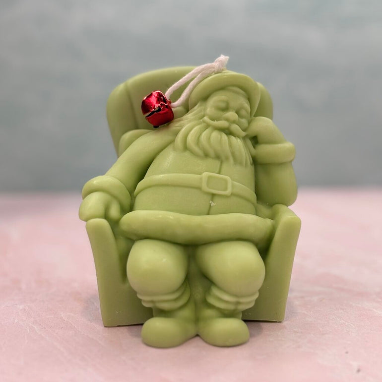 A handmade sleeping Santa Claus candle with a mild fragrance! Measures approximately 3"x2.5x3.5". Since these candles are handmade, each is unique and has some color variation!