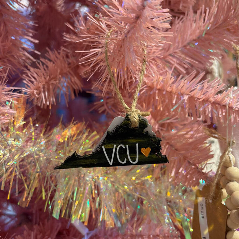 Rustic handpainted wood ornament for the Virginia Commonwealth University fans, students, and alumni.