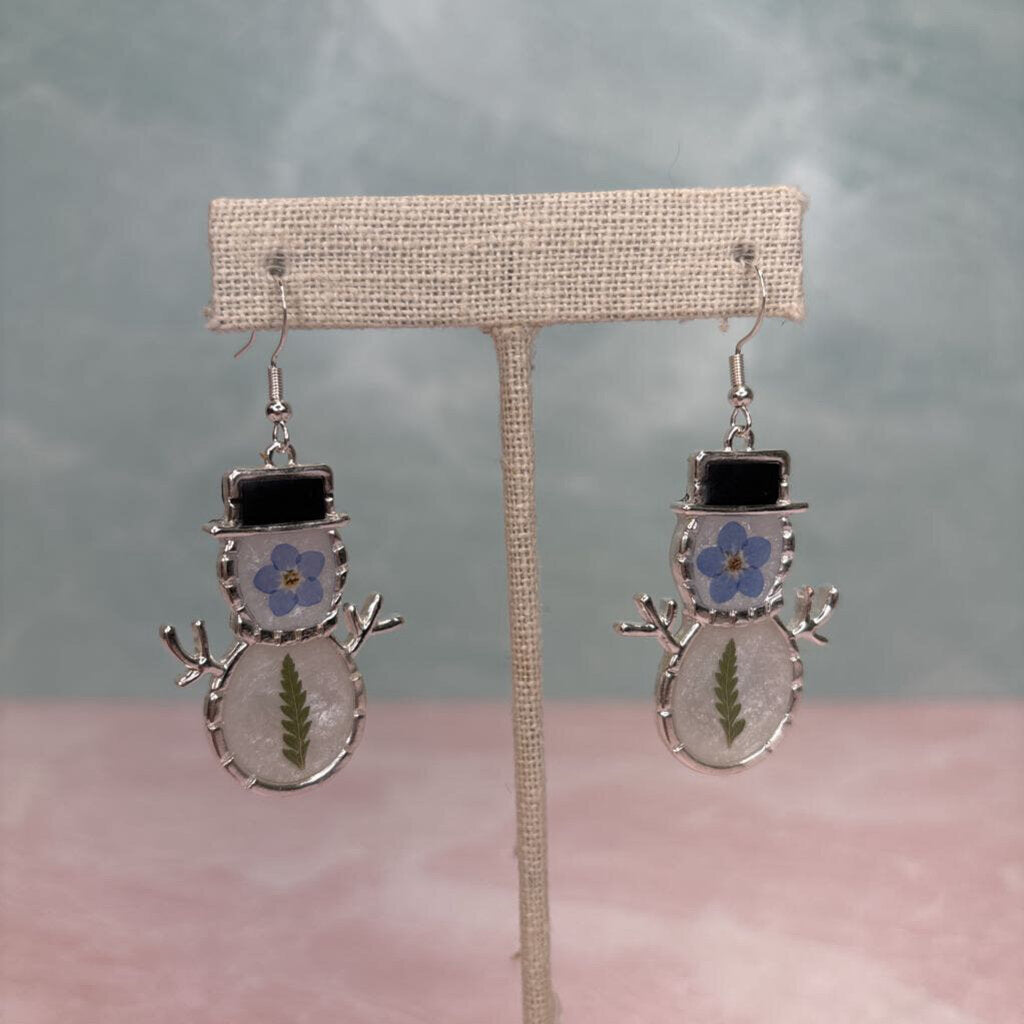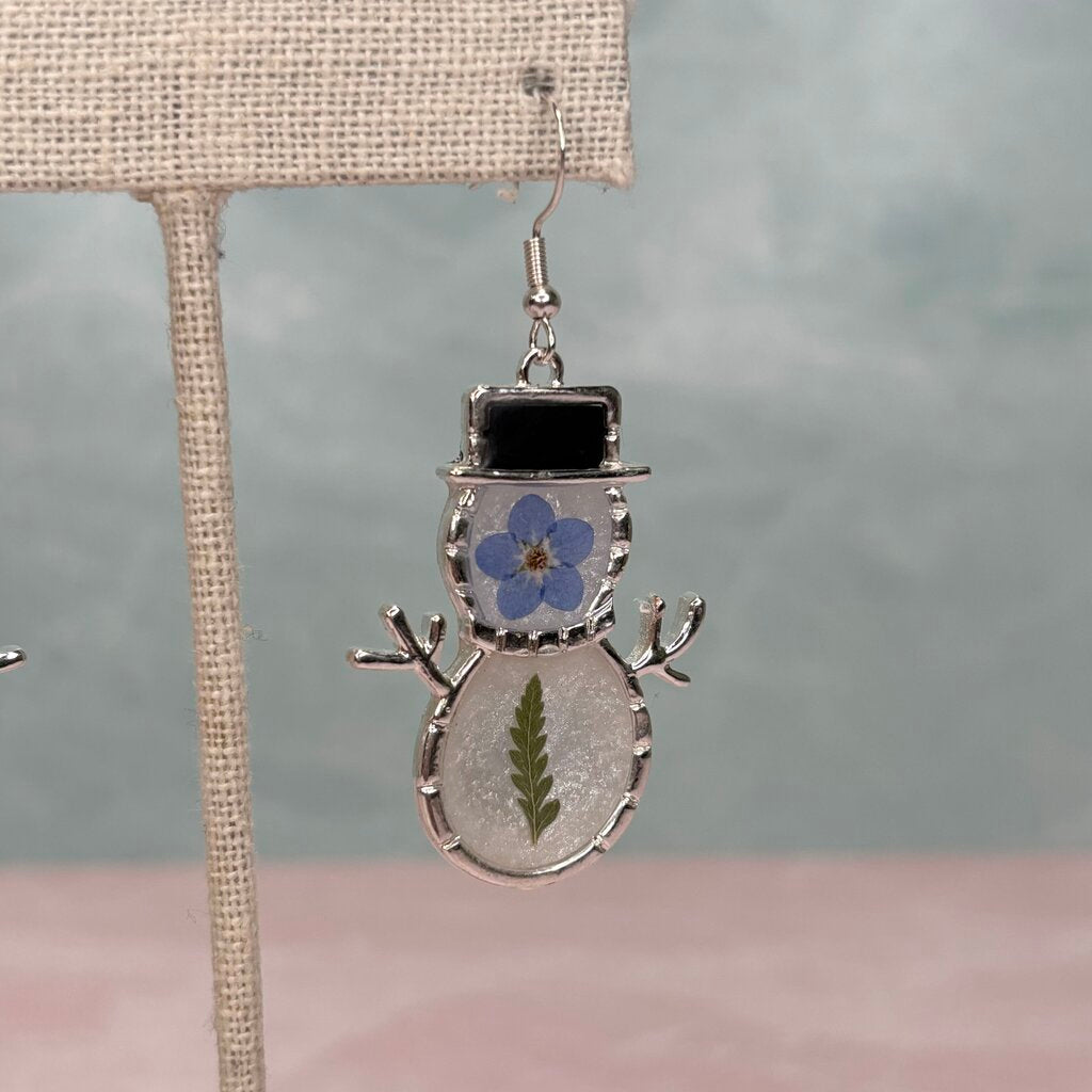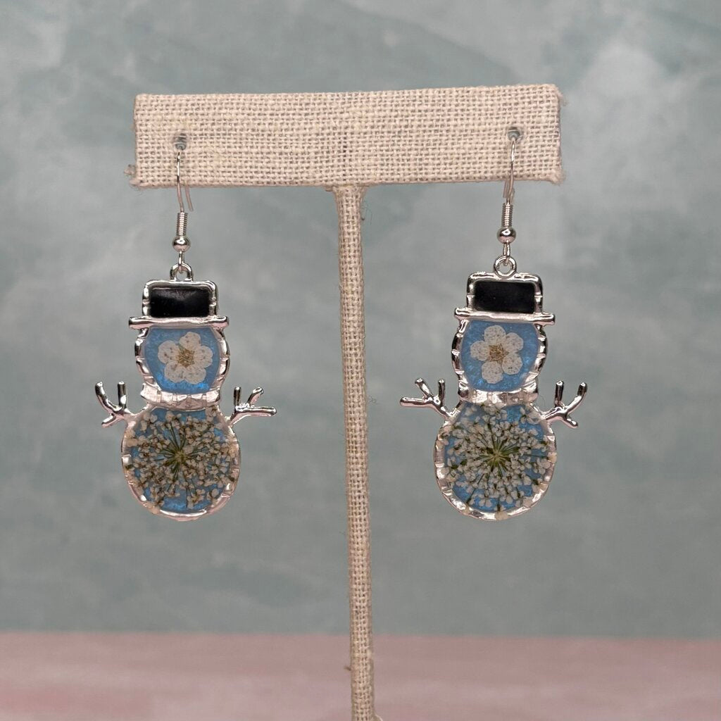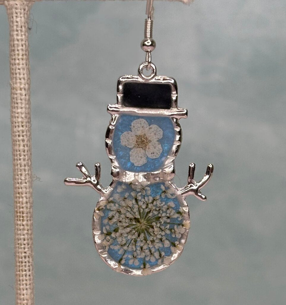 Cherry Blossom And Queen Annes Lace Snowman Earrings
