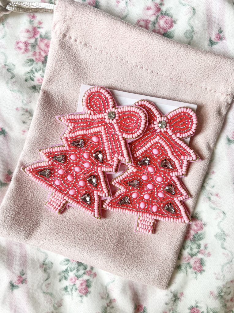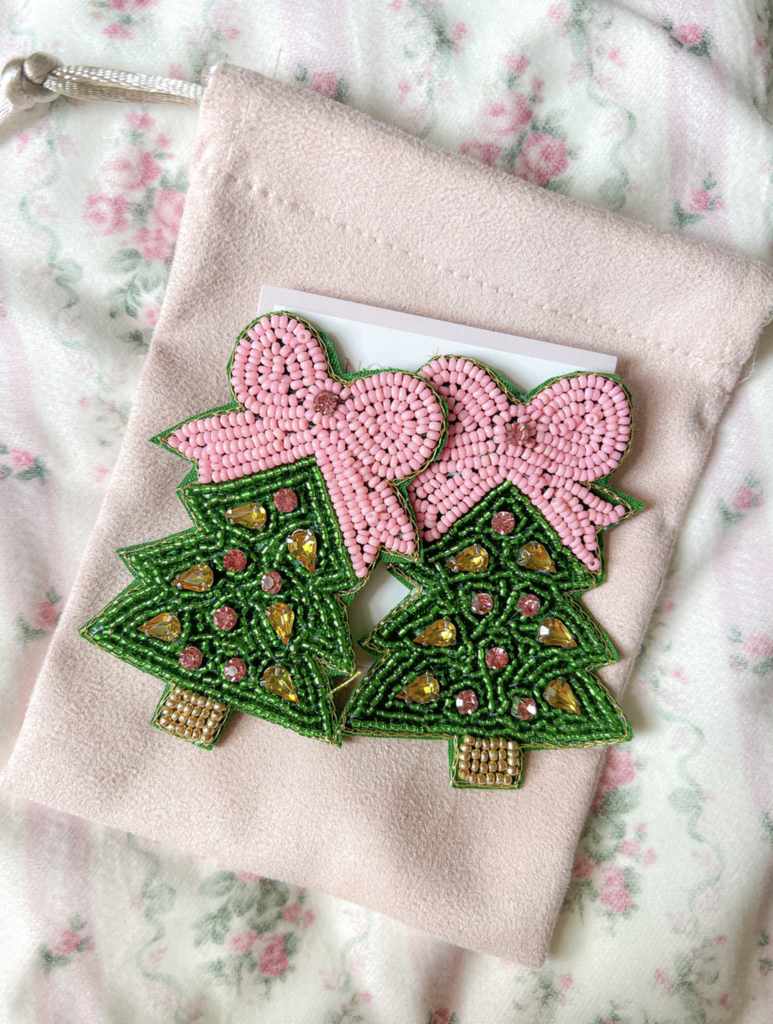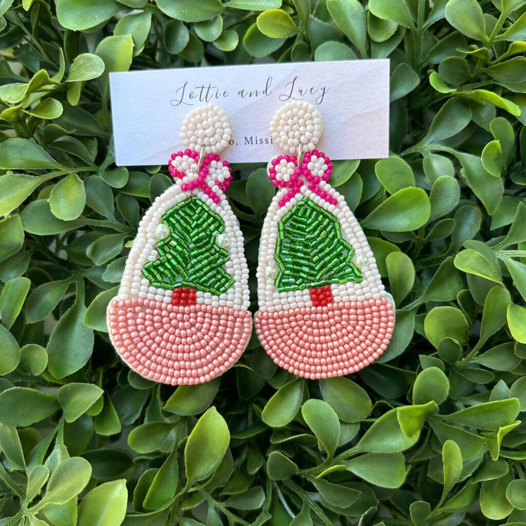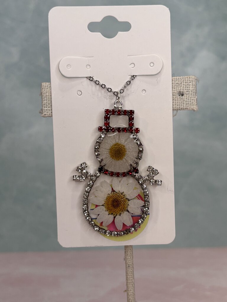 Cherry Blossom And Queen Annes Lace Snowman Earrings