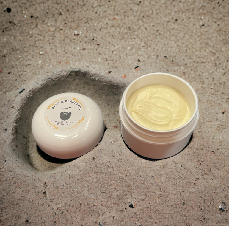 Daily Moisturizer with SPF - blend of cocoa butter, shea butter, and zinc oxide. Can be used daily on hands, face, and bald head.