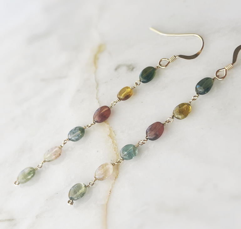 Rainbow Tourmaline Dangle Earrings
