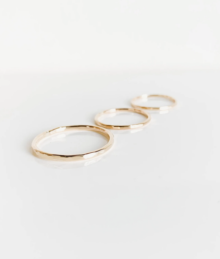 stacking band with hammer detail handcrafted in 14kt yellow gold or .935 silver.