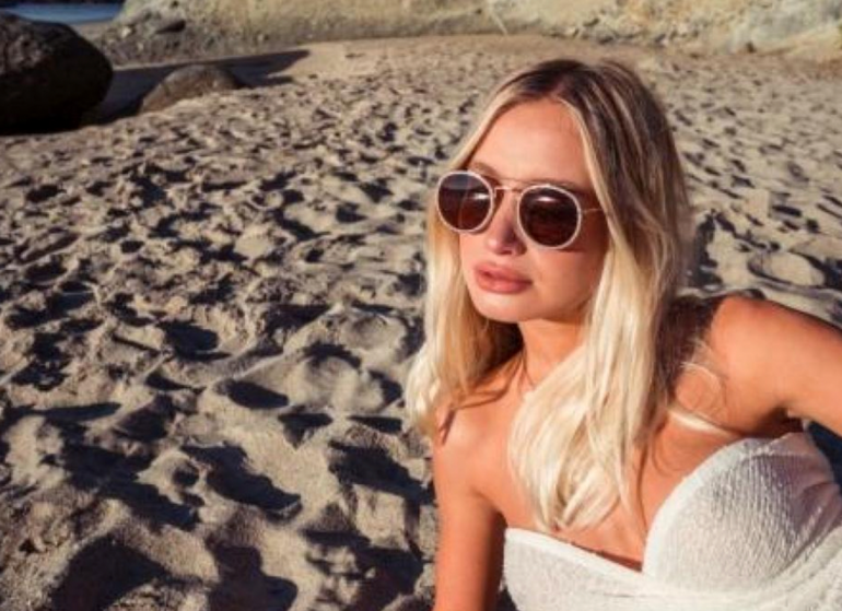 close up of two people clinking champagne glasses in front of a sparkly back drop