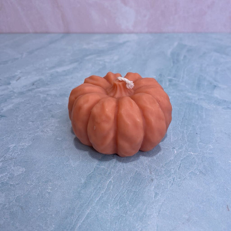 A handmade textured pumpkin candle with a mild scent! Measures 2" x 2.5". Since these candles are handmade, each is unique and has some color variation!