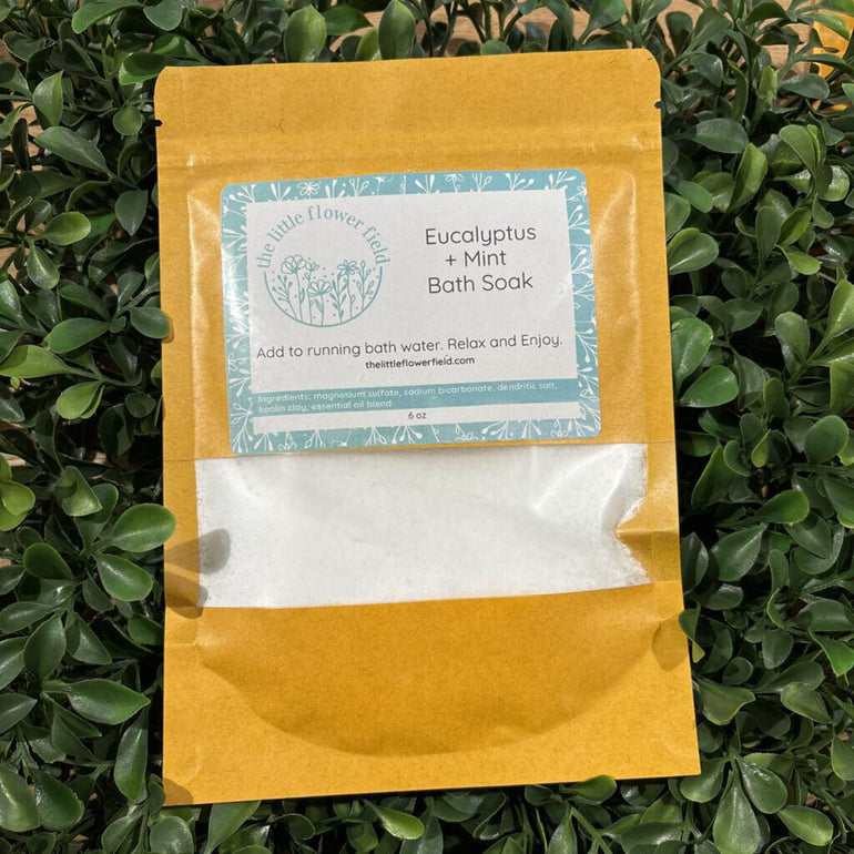 Ingredients: Magnesium Sulfate, sodium bicarbonate, dendritic salt, kaolin clay, essential oil blend
