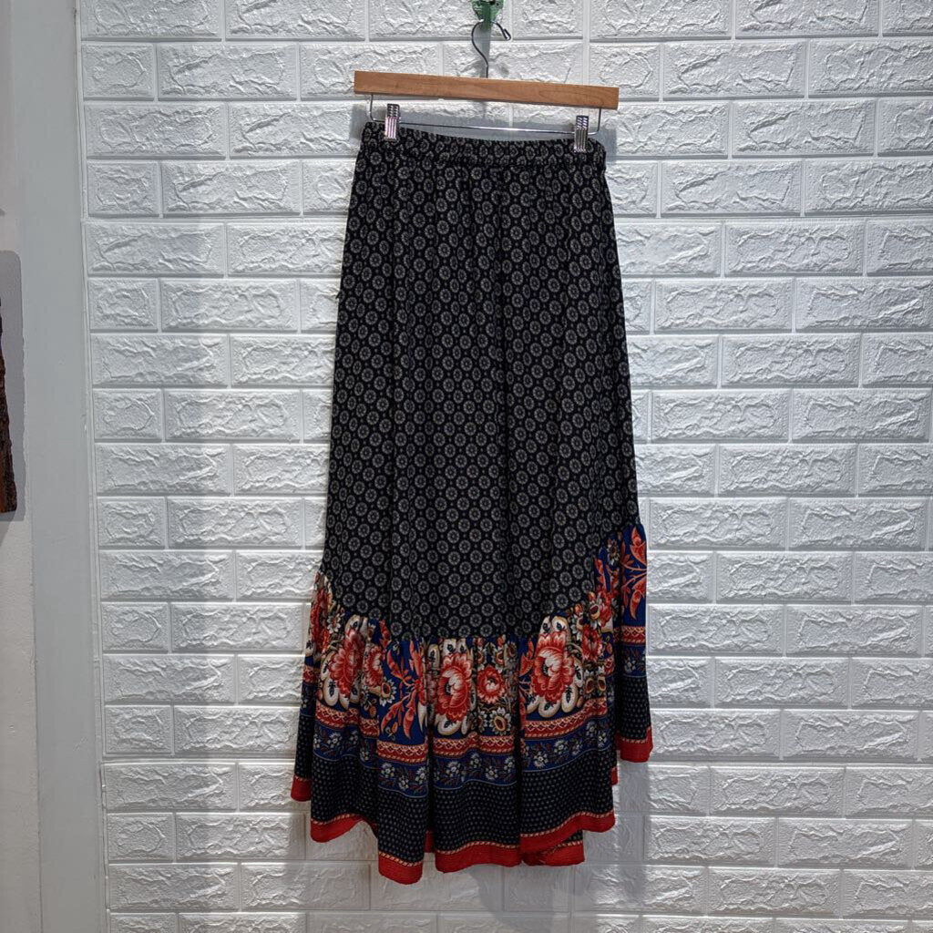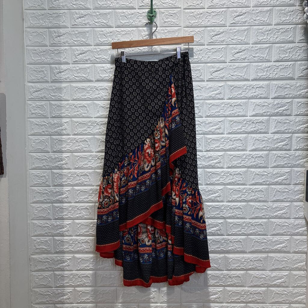 Patterned Pull On Wrap Skirt