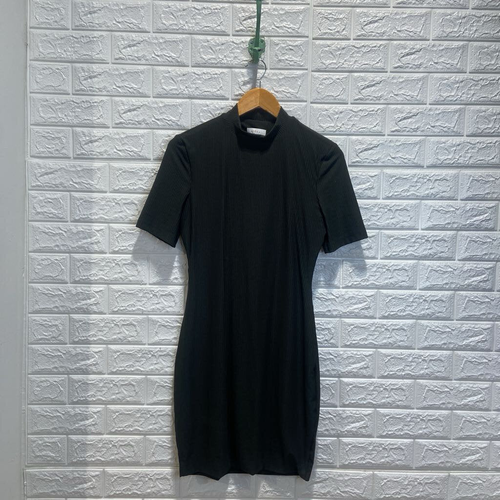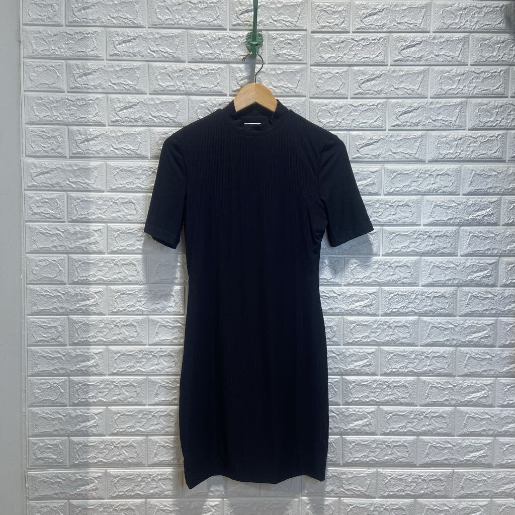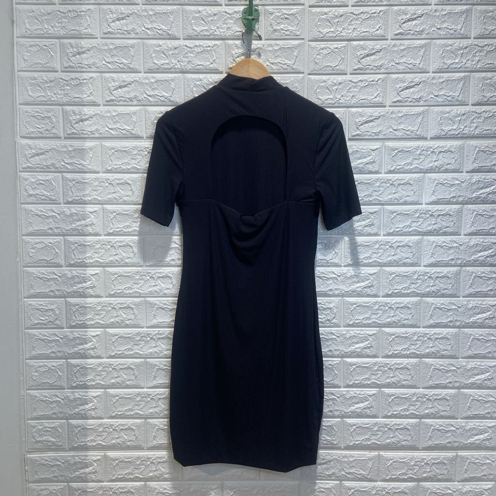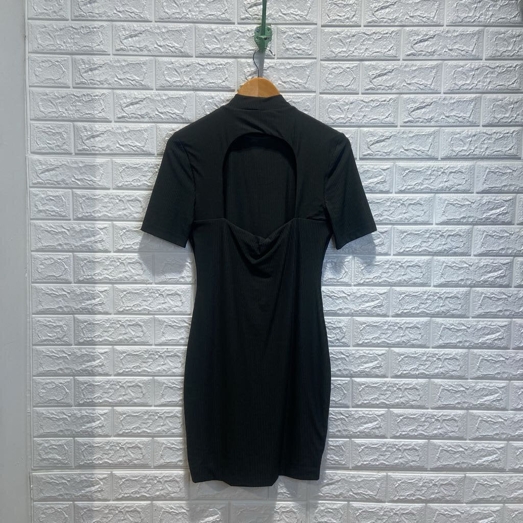 Ribbed High Neck Short Sleeve Backless Dress