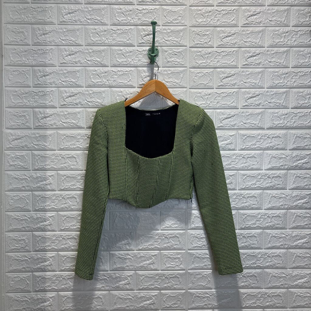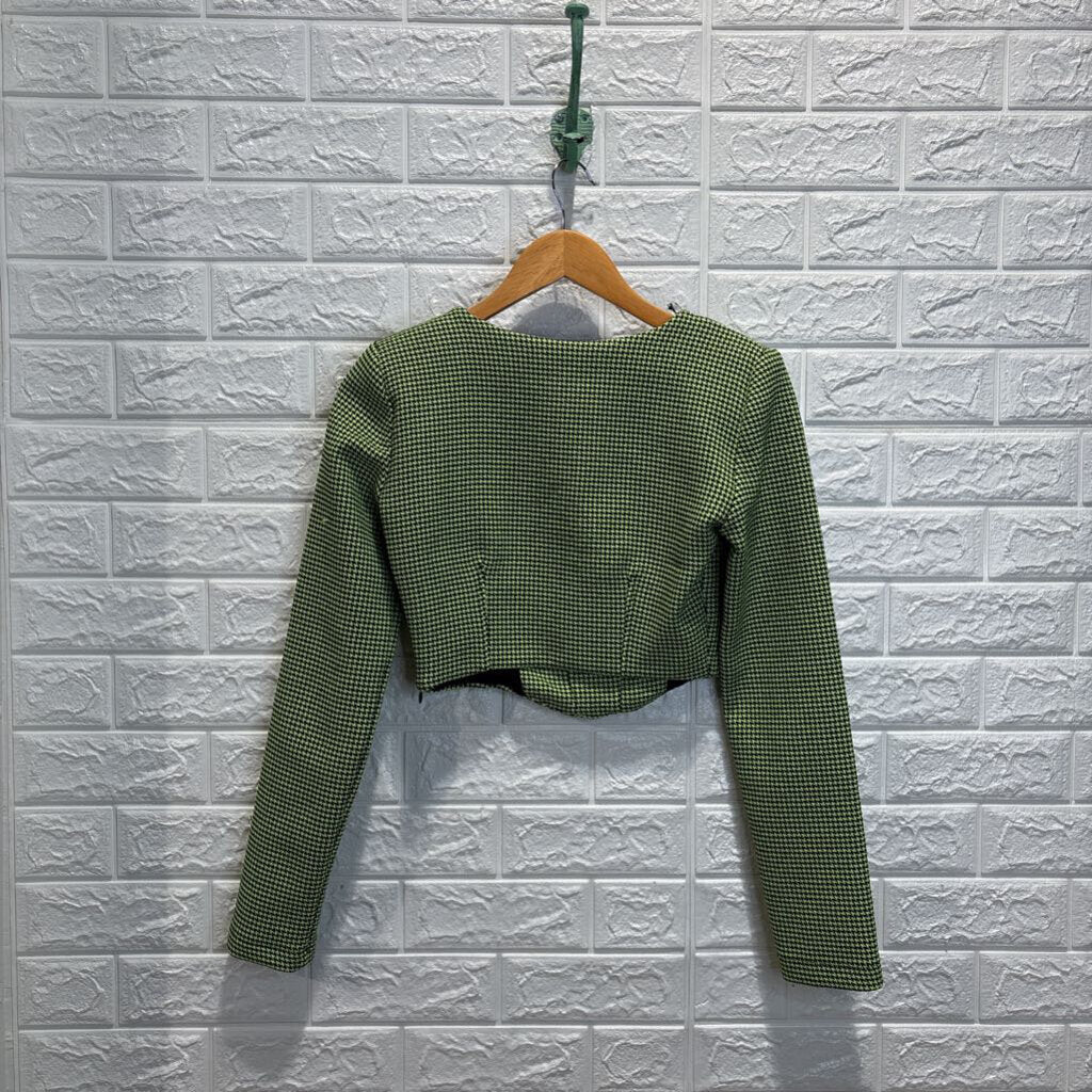 Houndstooth Long Sleeve Cropped Top
