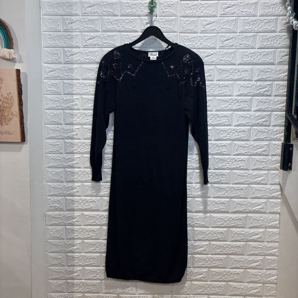 Vintage Beaded Long Sleeve Sweater Dress