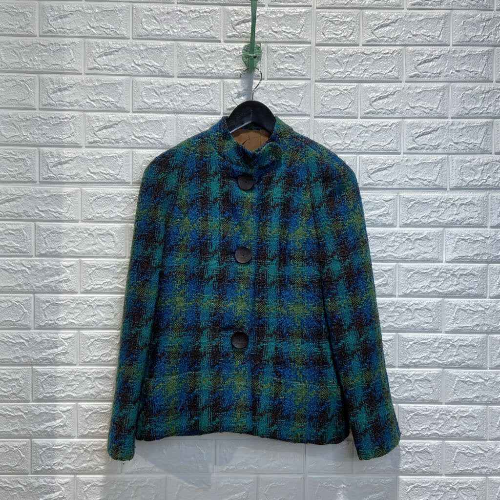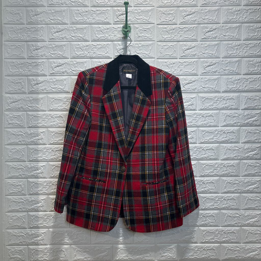 Vintage Wool Blend Plaid Blazer