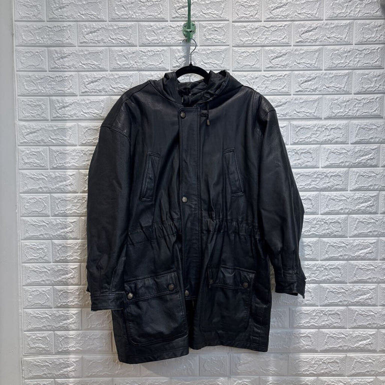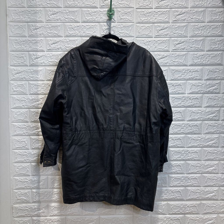 Vintage Cinch Waist Hooded Leather Jacket *as is*