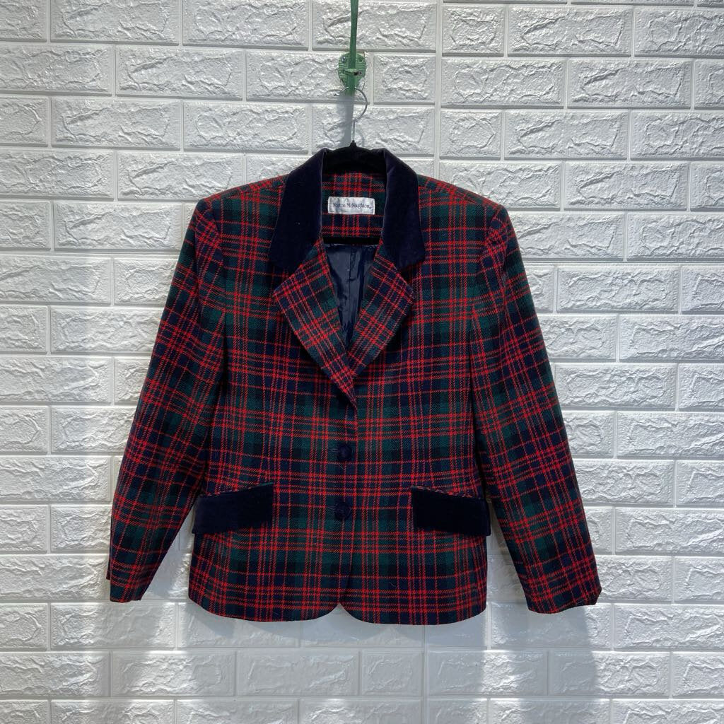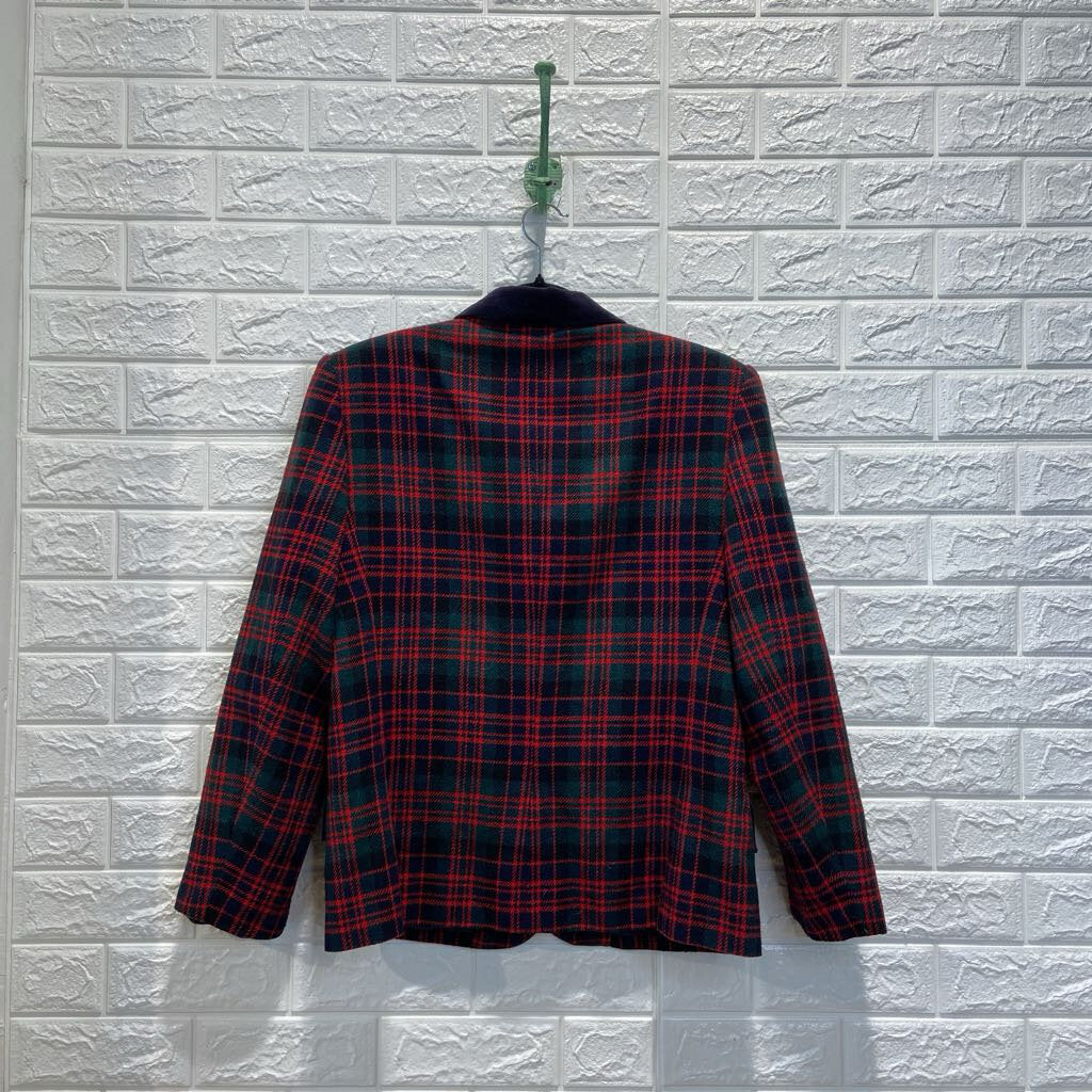 Vintage Plaid Velvet Collar Blazer