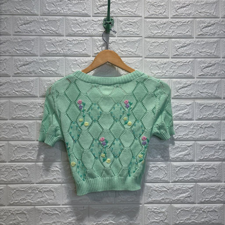Embellished Floral Short Sleeve Cardigan
