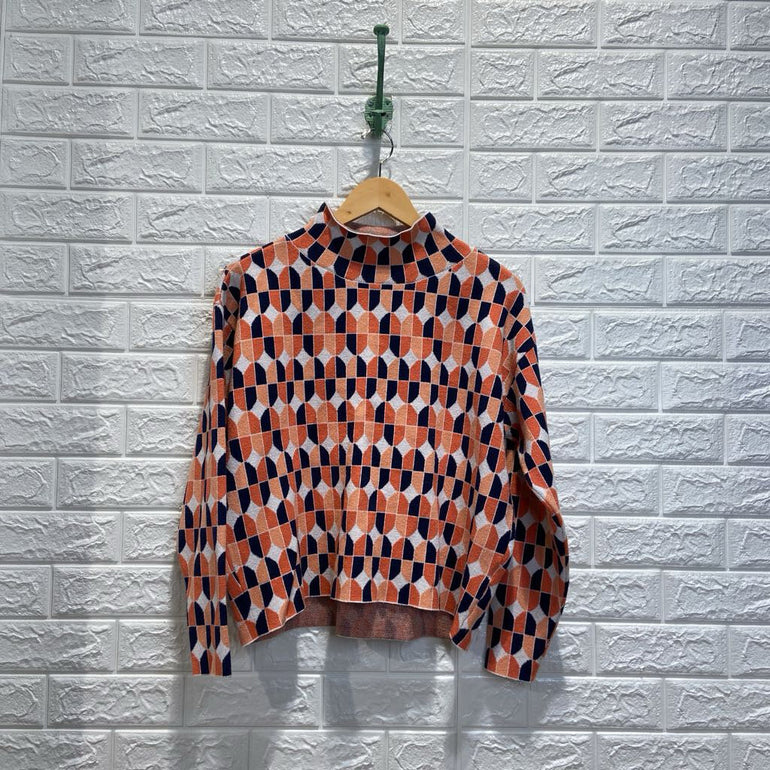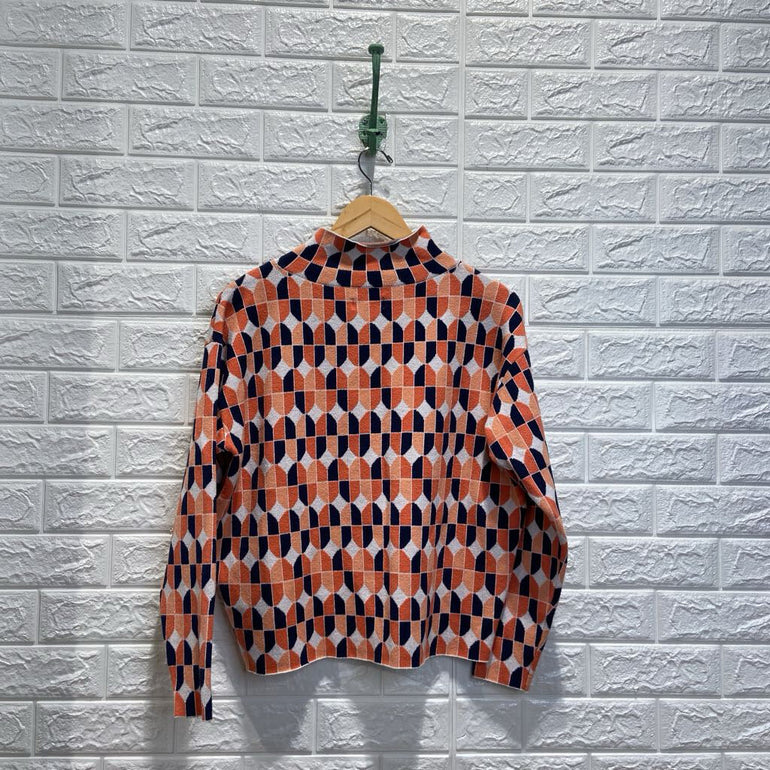 Geometric Patterned High Neck Sweater
