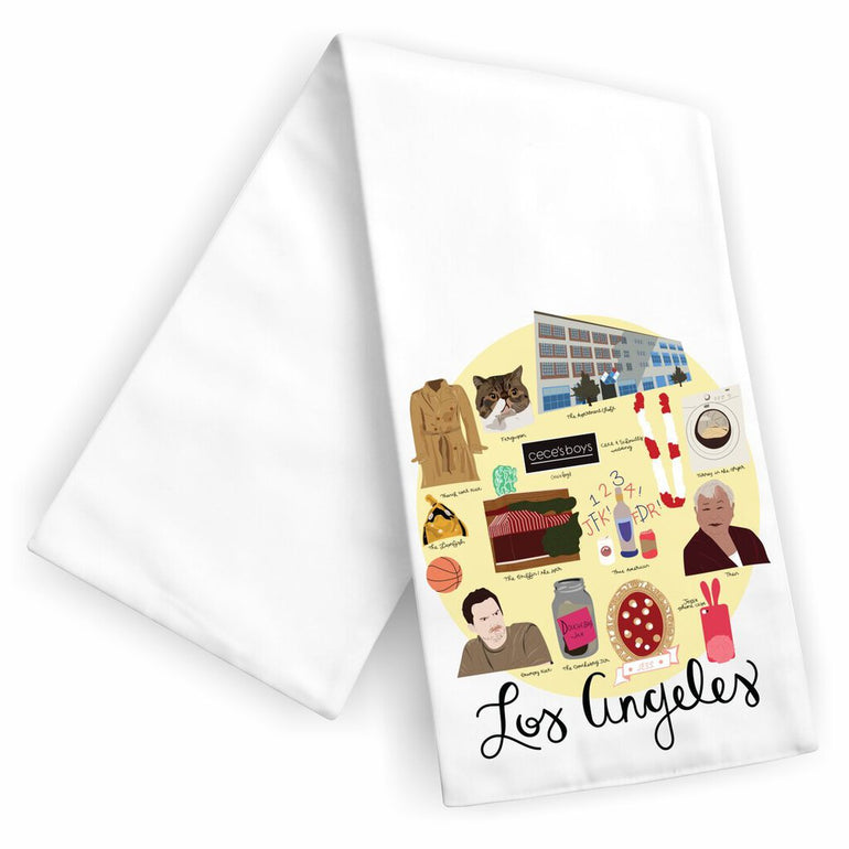 The illustration includes original illustrations of Ferguson, Tran, Jess's phone case, The Lionfish, a basketball for Coach + Winston, Trench coat Nick, Grumpy Nick, The Apartment / loft, the Turkey in the Dryer, True American, Cece's Boys, The Griffon / bar, and Cece + Schmidt's Wedding flowers.