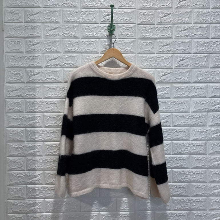 Mohair Wool Blend Bar Striped Sweater