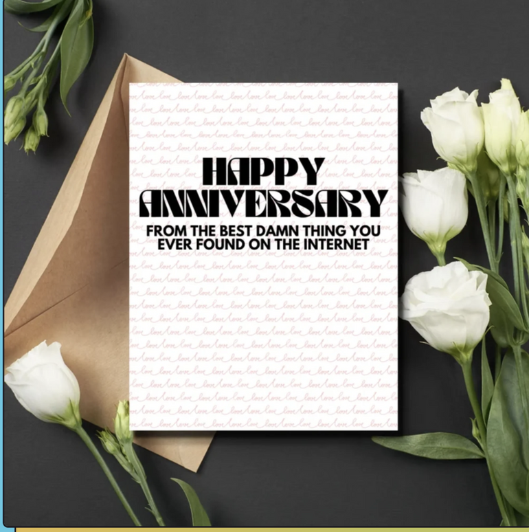 - Text: happy anniversary from the best damn thing you ever found on the internet
