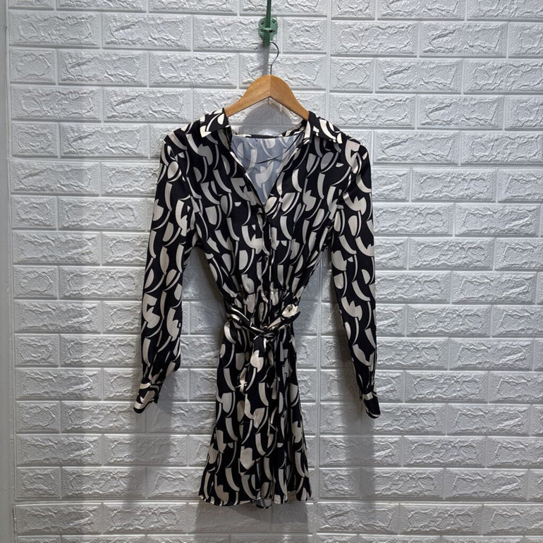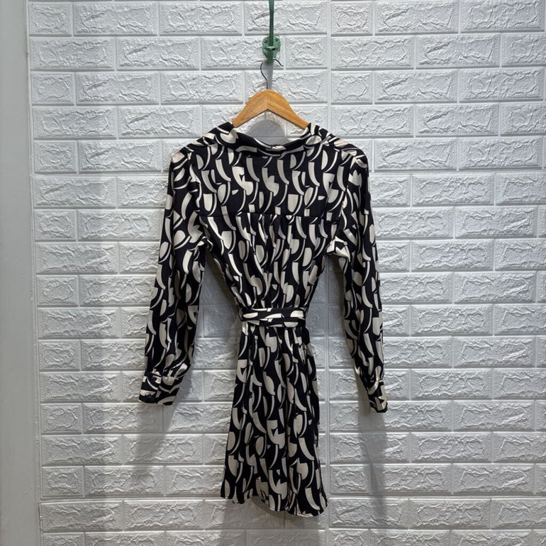 Patterned Belted Shirt Dress