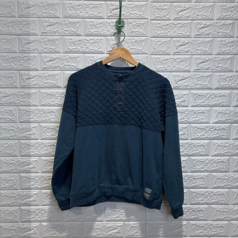 Quilted Shoulder Henley Sweater